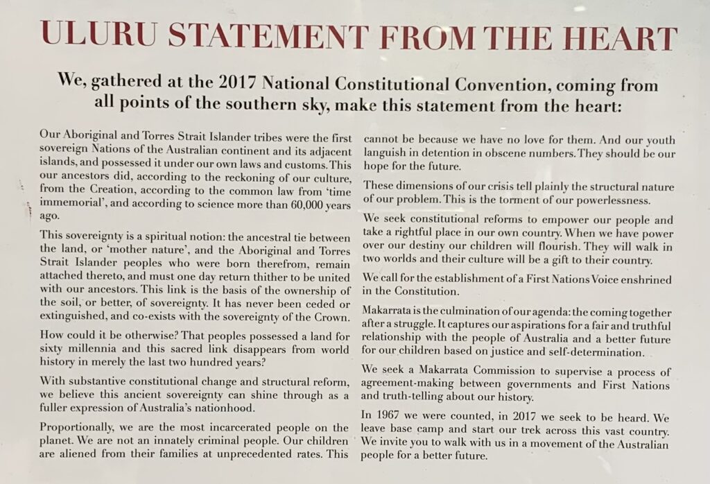 But then, when I was in Australia earlier this month, controversies surfaced in the Australian press about paying reparations to aboriginal peoples dispossessed, discriminated against, and otherwise harmed by British colonization. These controversies arose in connection with a proposal for a constitutional amendment to give aboriginal peoples a stronger voice in Australian politics. The referendum on “The Voice” proposal takes place later this year. The foundational document for this movement is the Uluru Statement from the Heart adopted by aboriginal leaders in 2017.