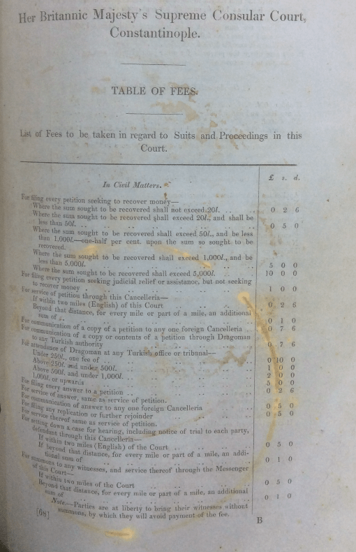 In the case of the British Supreme Consular Court at Constantinople, much of the back-and-forth with the Foreign Office dealt with weighty matters of law, justice, and power politics. Her Majesty’s Government established the court to reform how the British consular system in the Levant engaged in judicial matters. The Foreign Office intended these reforms to serve as examples for the changes that the British believed the Ottoman government needed to make to its laws and court system. But amidst such high diplomacy arose more down-to-earth problems that Edmund Hornby, chief judge of the court, and his colleagues had to manage.